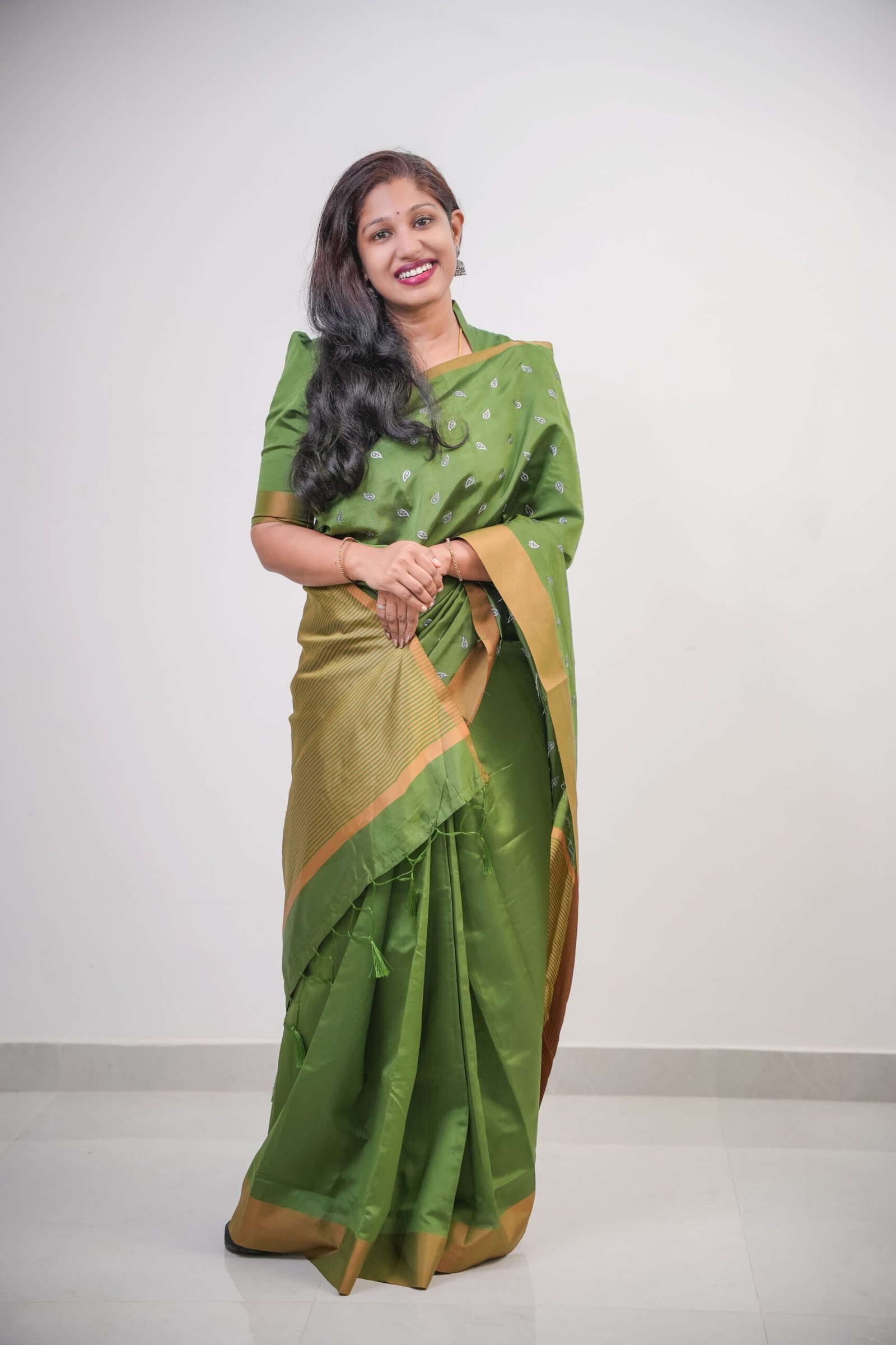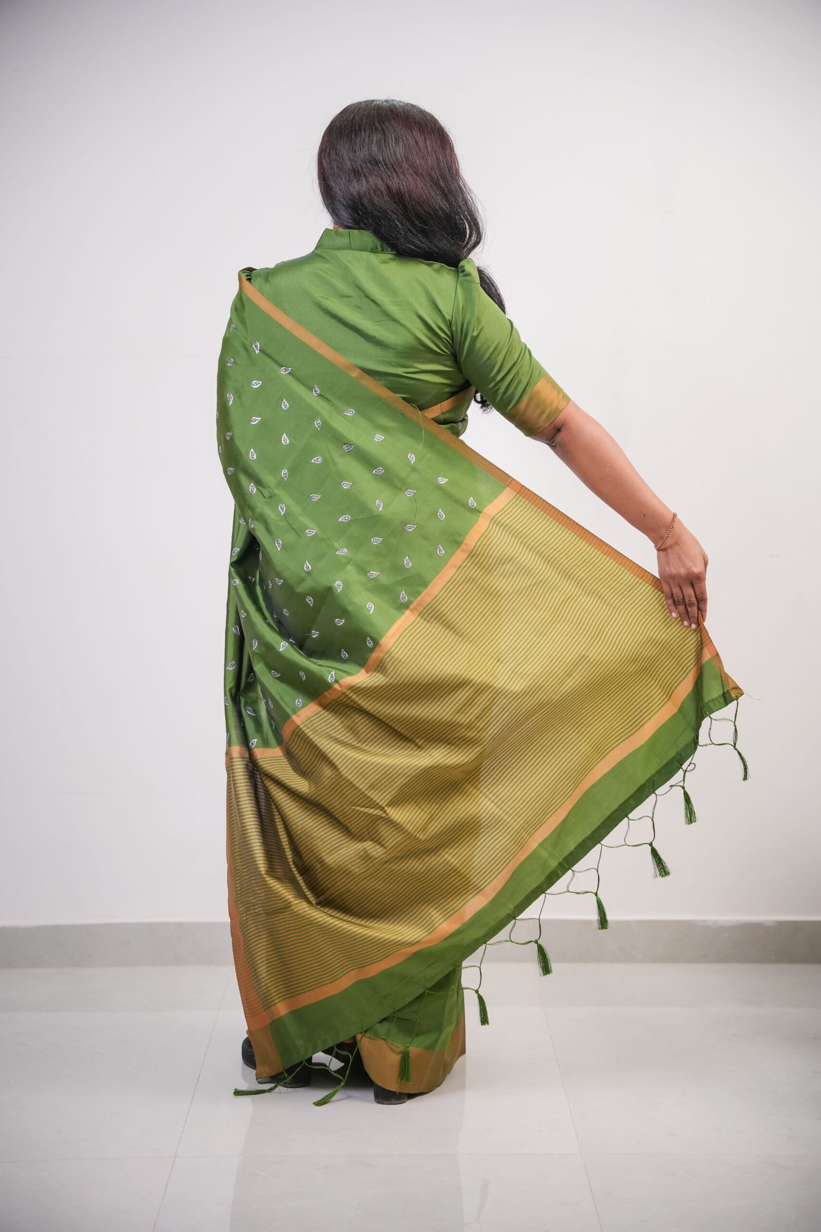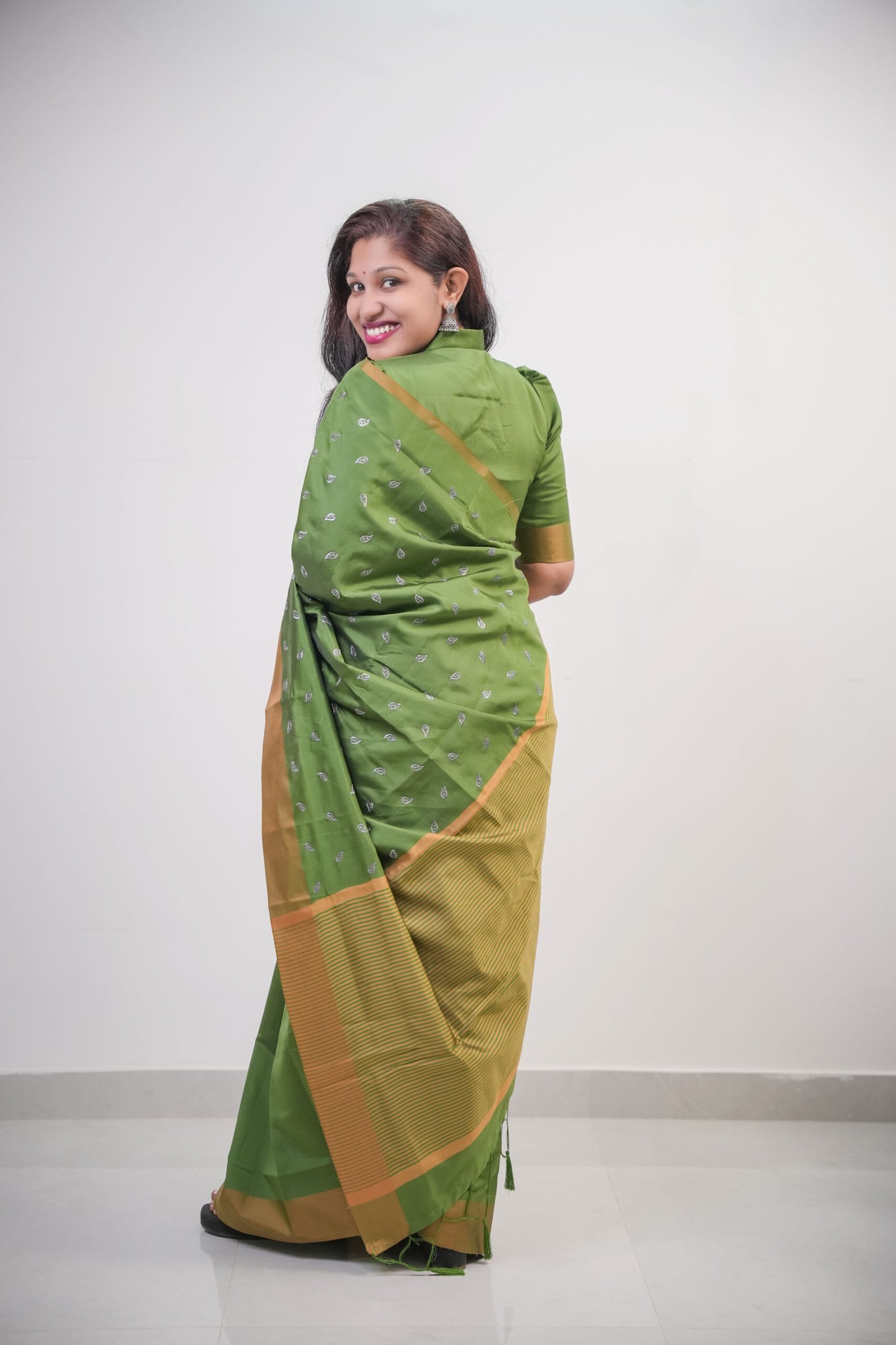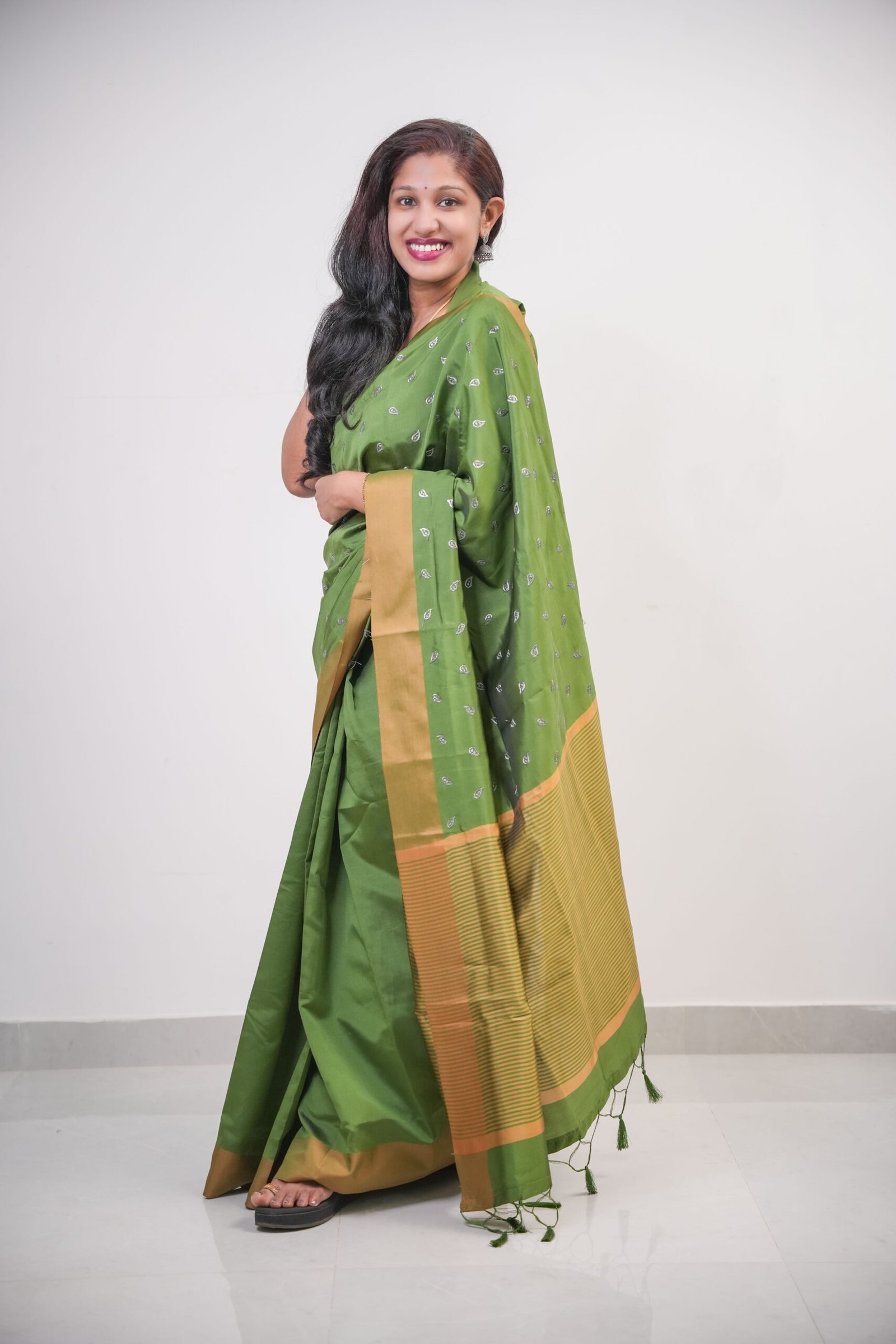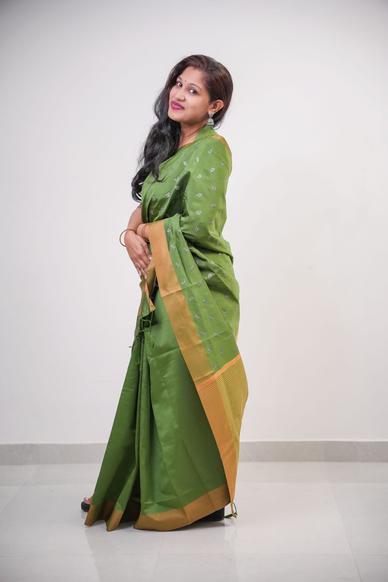 Olive Green Semi Silk Saree with Golden Border