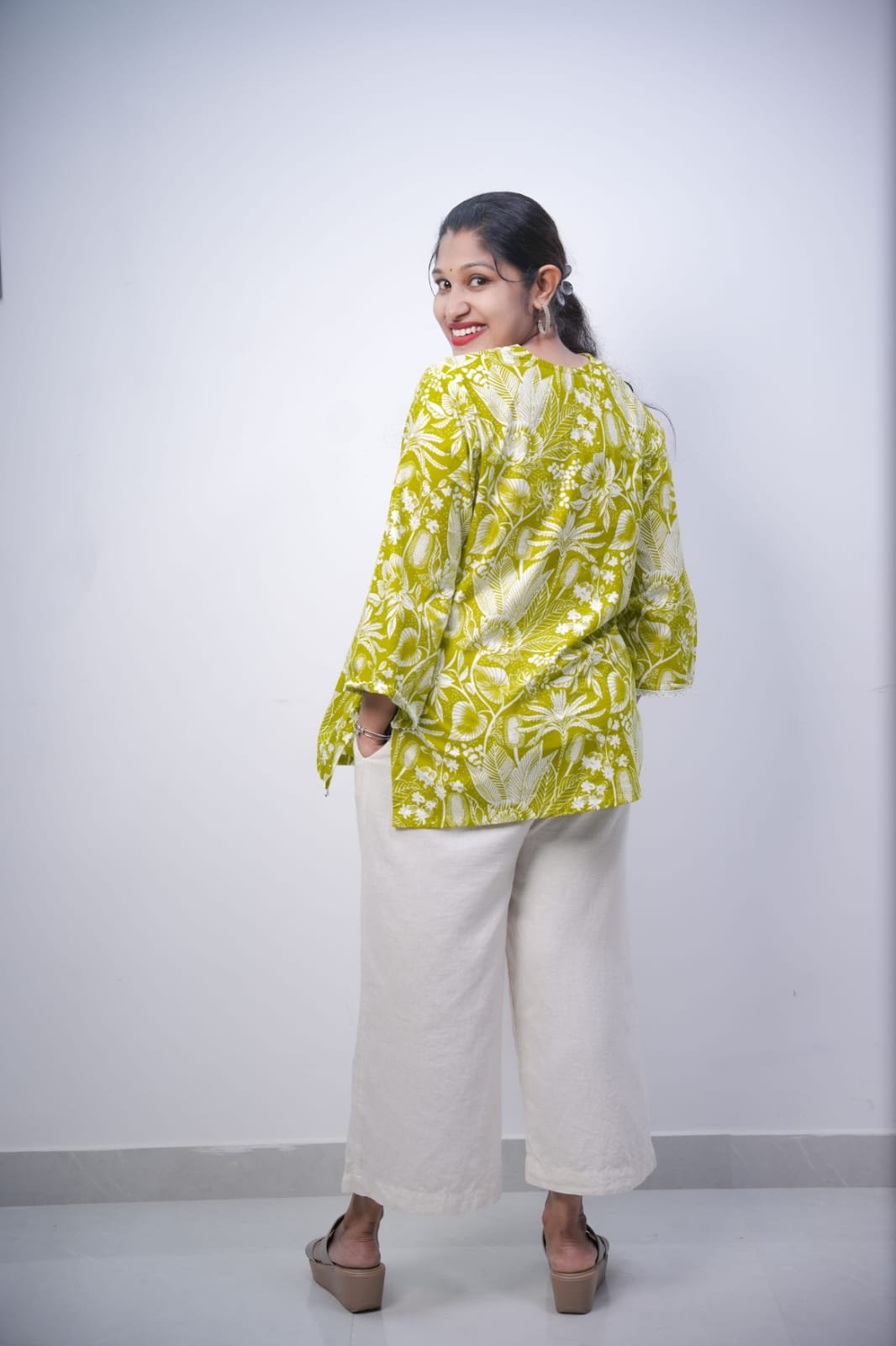 FEATURING STYLISH PAKISTANI SLEEVES, IT ADDS A MODERN YET GRACEFUL TOUCH TO YOUR LOOK. THE BEAUTIFUL GREEN COLOR WITH ELEGANT FLORAL PRINT ENHANCES ITS FRESH AND TRENDY APPEARANCE. THE RELAXED FIT MAKES IT IDEAL FOR CASUAL OUTINGS, OFFICE WEAR, OR HOME COMFORT. PAIR IT WITH PALAZZOS, JEANS, OR LEGGINGS FOR A VERSATILE OUTFIT.